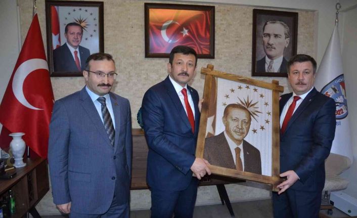 Emet AK Parti İlçe Başkanı Süleyman Ciner’de Milletvekili Hamza Dağ’a Cumhurbaşkanı Recep Tayyip Erdoğan’ın portresinden oluşan ahşap pano hediye etti.