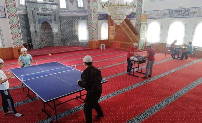 Kütahya’nın Aslanapa ilçesine bağlı Esenköy’de hafızlık öğrencileri, hem eğitim görüyor, hem de masa tenisi, satranç ve langırt oynayarak spor yapıyor.