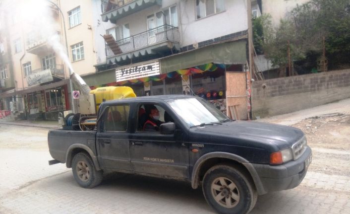 Hisarcık Belediyesi, Korona virüs (Covid-19) ile mücadele kapsamında cadde ve sokaklarda araç üstü cihaz ile dezenfekte çalışmalarını aralıksız sürdürüyor.