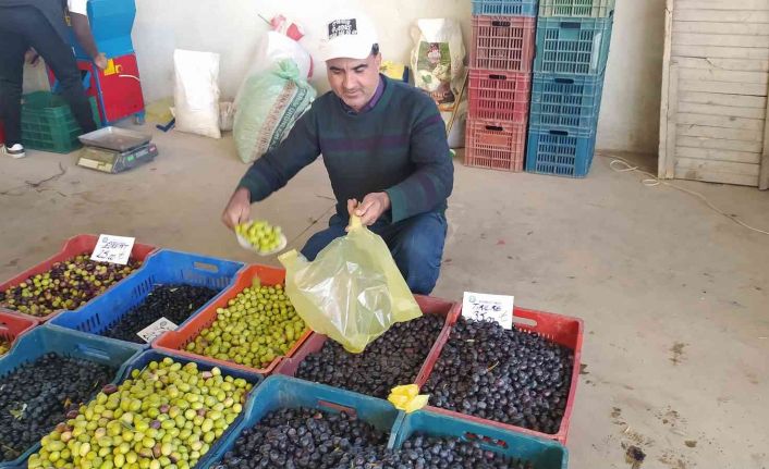Zeytinde hasat döneminin başlamasıyla ilçe pazarına Manisa’nın Akhisar ilçesinden getirilen siyah ve yeşil zeytinler salamura yapılmak üzere vatandaşlar tarafından adeta kapışılıyor.