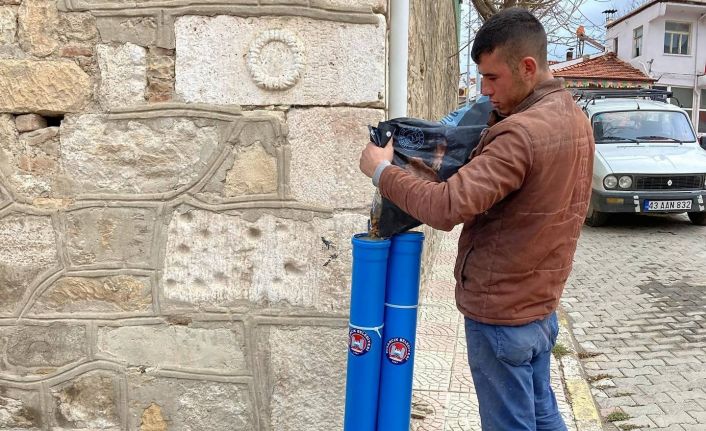 Kütahya’nın Hisarcık ilçesinde bir esnaf sokak hayvanlarını iş yerinin önünde mama ile besliyor, ayrıca belediyenin yemliklerine mama desteği veriyor.