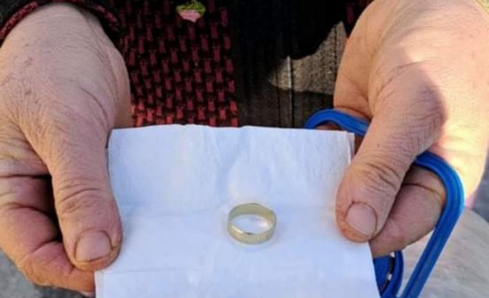 Yaşlı kadın parmağında 10 yıldan beri taşıdığı yüzüğünü depremzedelere bağışlamak istediğini söyleyerek İmam Hatip Selahattin Aydın’a teslim etti.