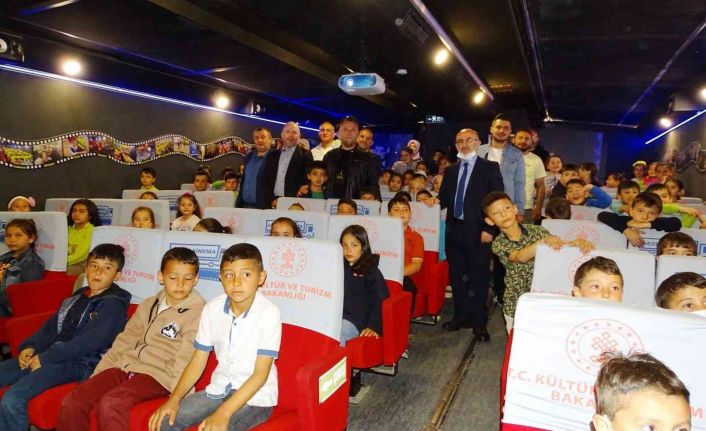 Cumhuriyet İlkokulu bahçesinde konuşlandırılan sinema tırı, çocuklara sinemada film izleme deneyimi sağladı. Sinema gösterimi öncesi öğrencilere hitaben bir konuşma yapan Proje sorumlusu Dursun Yavaş, “Türkiye’nin her noktasına gidiyor, il, ilçe, köy köy dolaşıp sizin gibi çocuklarımızla buluşuyoruz. Özellikle sinema olmayan bölgeleri tercih ediyoruz. Eminim sizin içinizde de sinemaya gitmeyenler vardır. Bizler sizin için buradayız. Sinemayı sizin ayağınıza kadar gönderdiği için Kültür ve Turizm Bakanlığımıza teşekkür ediyoruz.” dedi.