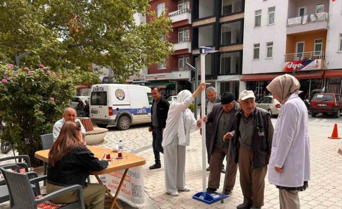 Sağlık Bakanlığı tarafından başlatılan "İdeal Kilonu Öğren, Sağlıklı Yaşa" projesi çerçevesinde Kütahya’nın Hisarcık ilçesinde katılımcıların boy ve kilo ölçümlerini yapılarak vücut kitle indeksi hesaplanıyor.