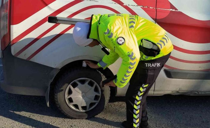 Lastik derinlik ölçme kumpası ile yapılan ölçümlerde lastik derinliği 1,6 milimetrenin altında kalan araç sürücülerine bin 152 TL idari para cezası kesiliyor. Trafik denetleme ekipleri, vatandaşların can ve mal güvenliğini korumak adına kış lastiği denetimlerinin aralıksız süreceğini belirttiler.