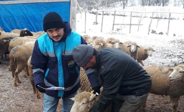 Zorlu kış şartlarında küçükbaş desteklemesine girecek hayvan sayımlarına devam eden İlçe Tarım ve Orman Müdürlüğü ekipleri, yaptıkları çalışmalarda başvurudaki hayvan sayısı ile işletmedeki hayvan sayılarının tutup tutmadığını kontrol ediyor.