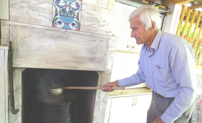 Kış aylarında yaygın olarak tüketilen katkısız ve organik üzüm pekmezi imalatının emek isteyen ve uzun uğraş gerektiren çok zahmetli bir iş olduğuna değinen emekli işçi Hasan Soyugür, üzüm pekmezini nasıl ürettiklerini anlattı.
