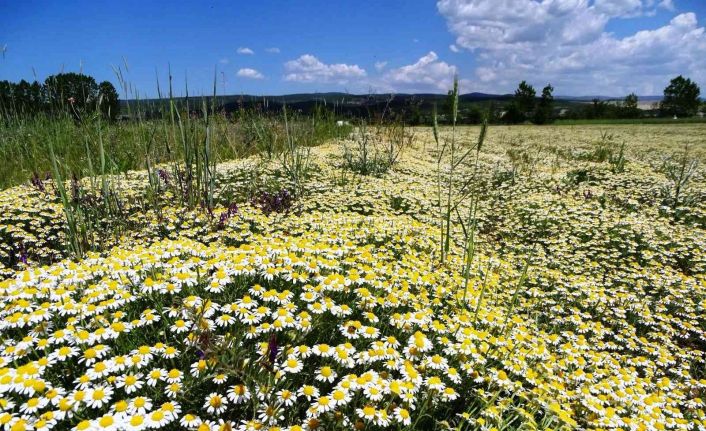 Kütahya’nın Hisarcık ilçesindeki tarlalar papatyaların açmasıyla sarı-beyaza büründü.