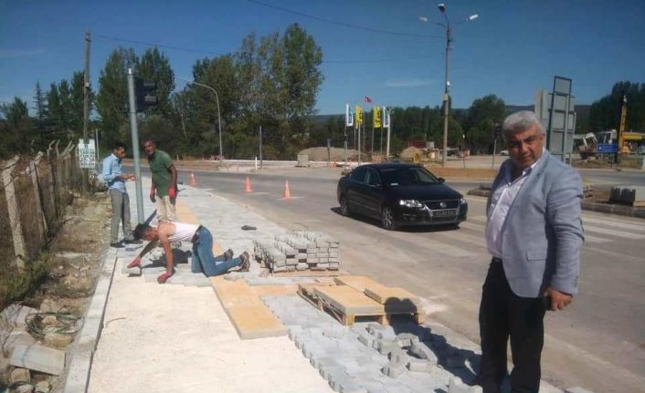 Hisarcık-Simav karayolu güzergahı TOKİ kavşağında yapımına başlanan yeni yaya geçidinde yaklaşık 900 metrekare kilitli parke taşı kullanılacak.