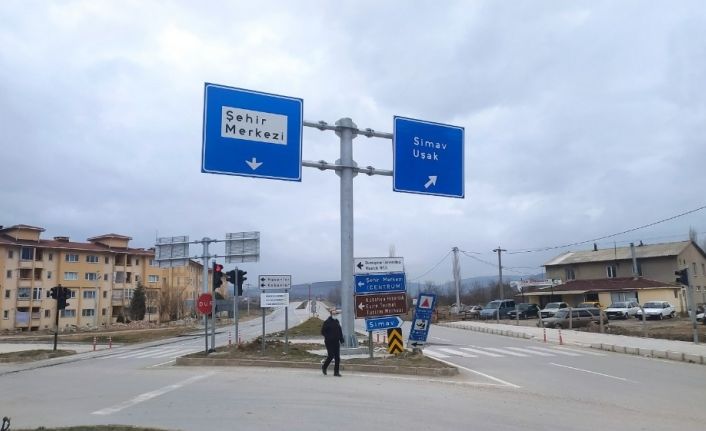 Hisarcık’ta yeni yola dev yön levhaları dikildi