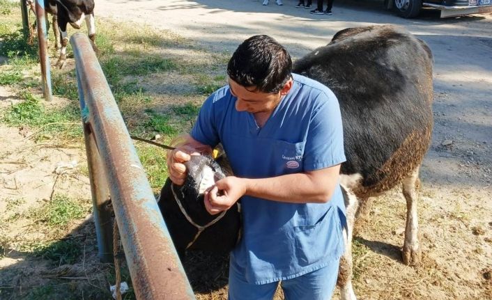 Kurban satış alanlarındaki denetimlerde Veteriner Hekim tarafından kurbanlık hayvanların sağlıklı olup olmadıkları, yaşını doldurup, doldurmadığı, dişi kurbanlıkların ise gebe olup olmadıkları kontrol edildi.