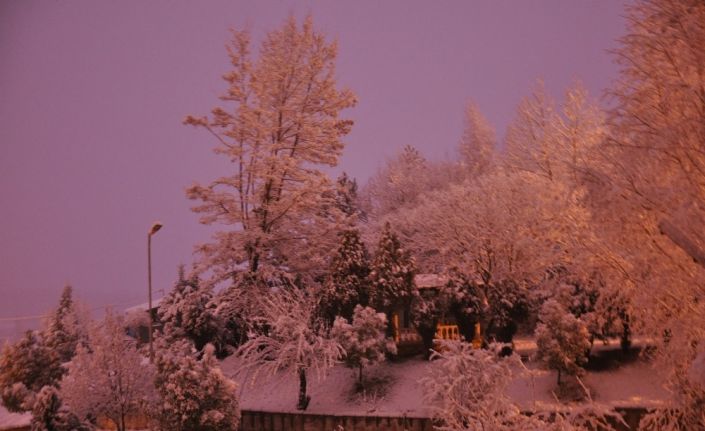 Kütahya’nın Simav ilçesinde dün gece başlayan ve sabah saatlerine kadar devam eden kar yağışı, ağaçların üzerinde kartpostallık manzaralar oluşturdu.