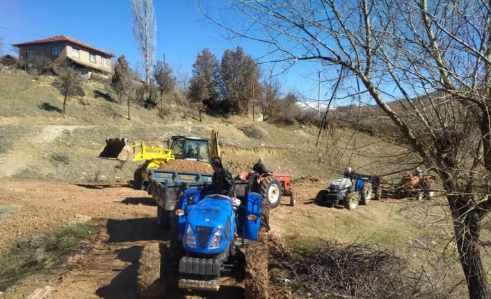 Kütahya’nın Şaphane ilçesine bağlı Uğurlugüme köyünde yaşayan vatandaşlar, imece usulü yol yapımına başladılar.