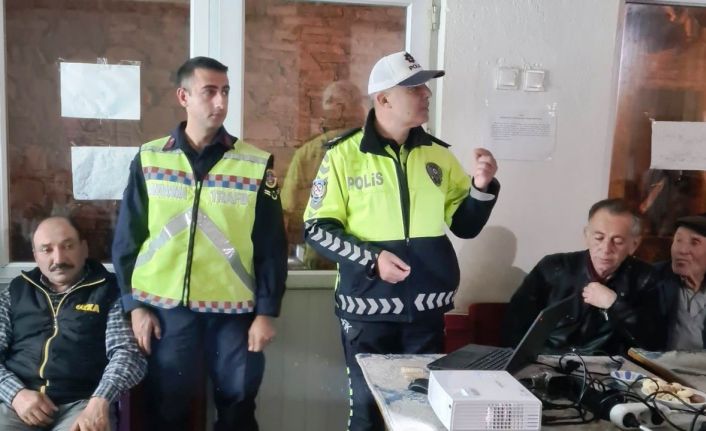 Ekipler, Hisarcık ilçesi Yukarıyoncaağaç köyünde bir kahvehanede toplam 51 vatandaşa genel trafik kuralları, emniyet kemeri kullanılması ve traktör kullanımları konularında bilgi verdi.