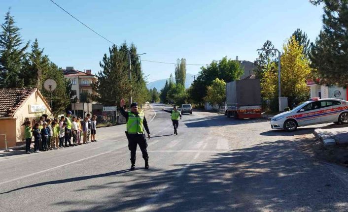 Emet İlçe Jandarma Komutanlığı Trafik Timleri tarafından "Yaya öncelikli trafik" uygulaması çerçevesinde Hisarcık ilçesi Dereköy Şehit Fatih Seven Ortaokulu okul geçidinde güvenli yaya geçidi uygulaması gerçekleştirildi.
