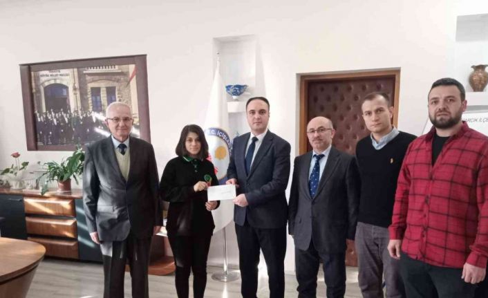 Başarısından dolayı Ayşe Korkmaz’ı tebrik eden Kaymakam Tosun, öğrenciyi hediye çeki ile ödüllendirdi.