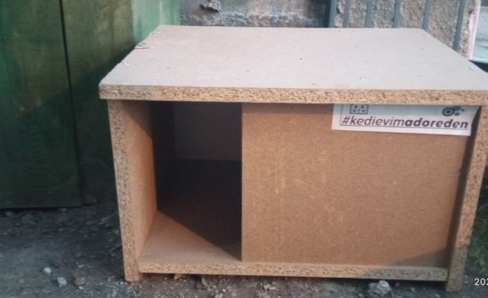 Kütahya’nın Emet ilçesinde emekli memur Halim Uzun kendi imkanlarıyla aldığı 2 adet kedi kulübesini, bahçesinde sokak hayvanları besleyen hayvansever Elif Yıldız Nasuhoğlu’na hediye etti.