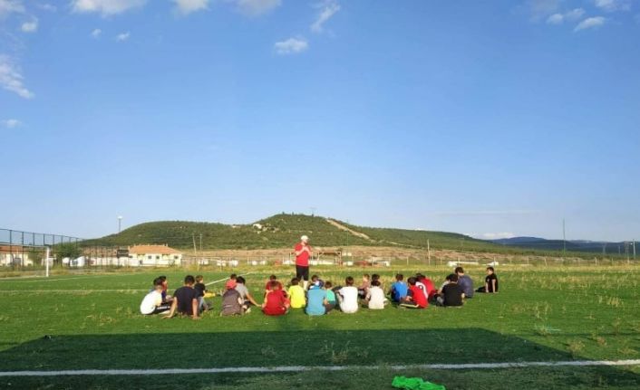 Efdal Ülke Antrenörlüğünde her gün antrenman öncesi 15 dakika kitap okutturulan futbol okulu öğrencileri, daha sonra ilçe şehir stadında antrenman yapıyorlar.
