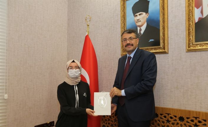 Vali Ali Çelik, öğrencileri makamında kabul ederek ortaokullar arası kompozisyon yarışmasının birincisi Zeynep Çakır, ikincisi Ecrin Yıldız, üçüncüsü Ceyda Ecrin Çınar ile lise birincisi Elif Rana Atiş, ikinci Recep Güngör ve üçüncü Halil Burak Bilgi’ni tebrik etti.