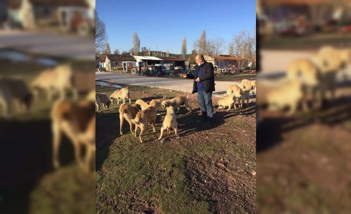 Kütahya’nın Aslanapa ilçesine bağlı Örenköy köyünde yaklaşık 25 köpeği düzenli olarak besleyen Mevlüt Güllü, bu hareketiyle büyük takdir topluyor.