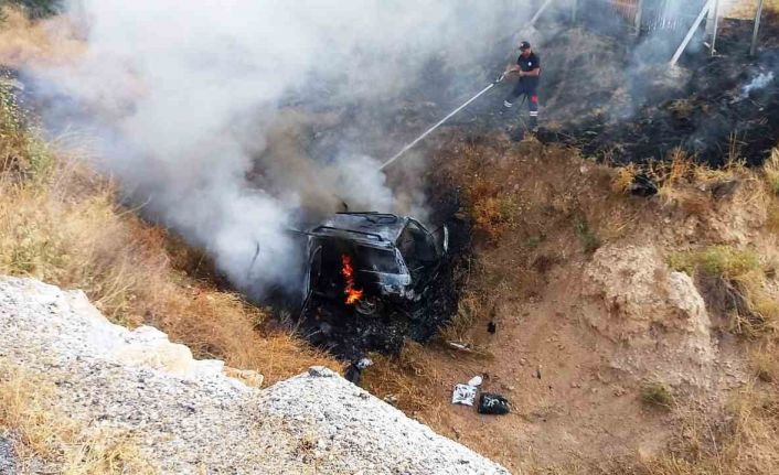 KÜTAHYA-AFYONKARAHİSAR YOLUNDA KAZA YAPAN ARAÇ ALEV ALDI: 2 YARALI