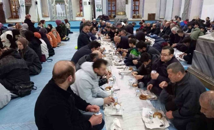 Kütahya İHH İnsani Yardım Derneği tarafından Ulu Camii’nde yer sofrası kurularak gerçekleştirilen iftar programında vatandaşlar hurma, su, ayran ve simitle iftar yaptı.