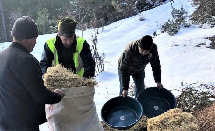 Kütahya Orman Bölge Müdürlüğünün soğuk kış günlerinde, zor koşullarda yaşam mücadelesi veren yaban hayatına destek verdiği bildirildi.