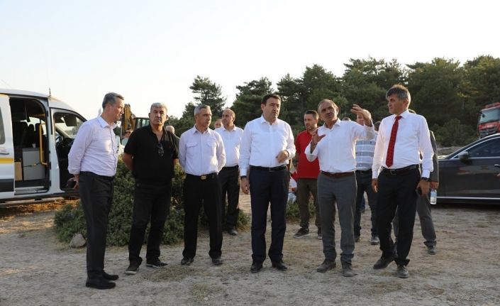 Kütahya Gedikoğlu Çiftliği mevkiinde çıkan orman yangını bölgesinde incelemelerde bulunan Vali Musa Işın, yangın söndürme çalışmalarının koordinasyonunu sağladı.