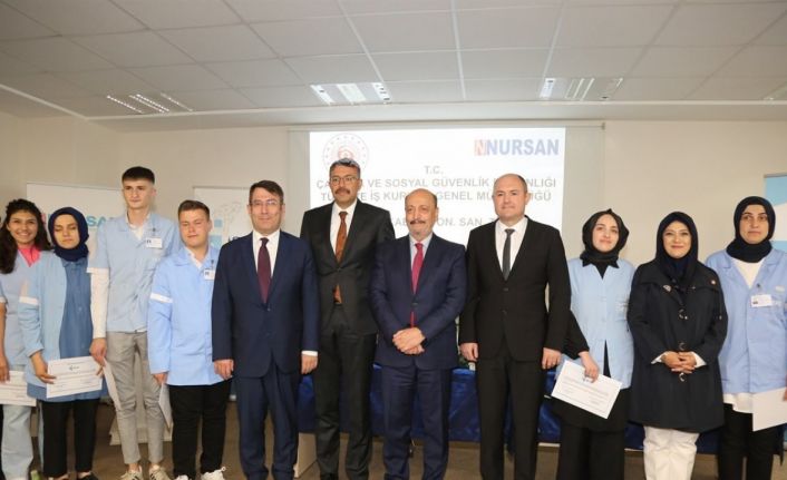Konuşmaların ardından Nursan İcra Kurulu Başkanı Kağan Yamakoğlu ve Bakan Bilgin, işbaşı eğitim programını tamamlayan işçilere belgelerini verdi.