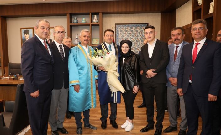 Kütahya Esnaf ve Sanatkârlar Odaları Birliği (KÜTESOB) Başkanı, kabullerinden dolayı komite adına Işın’a teşekkür ederek Ahi kaftanı takdim etti.