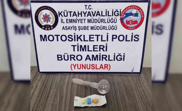Kütahya’da Motosikletli Polis Timlerince durdurulan araçta bulunan 3 kişiden birinin Uyuşturucu Madde Ticareti Yapma suçundan arandığı tespit edilirken, yapılan aramada, 3 adet extasy hap ve 1 adet payp ele geçirildi.