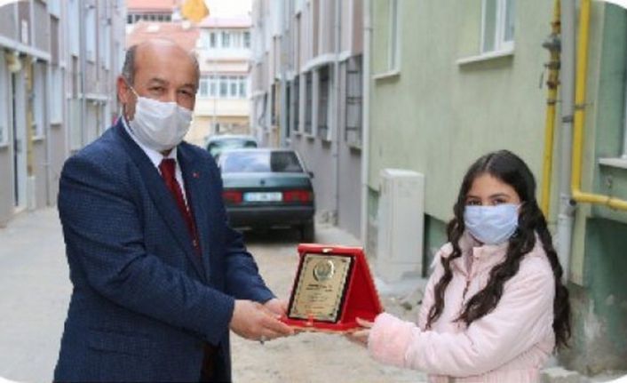 Korona virüs (Covid-19) tedbirleri gözetilerek öğrencilere ödülleri evlerinin önünde verildi.