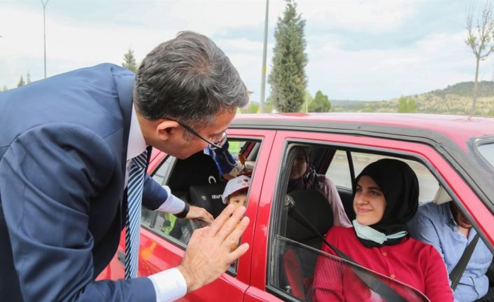 Trafik kuralları hakkında bilgilerin yer aldığı broşürleri dağıtan Vali Çelik, araçlardaki çocuklara da kırmızı düdük hediye ederek karşılaştıkları kural ihlallerinde kullanmalarını istedi.