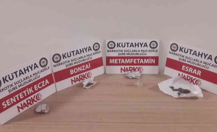 Kütahya’da Çarşı ve Mahalle Bekçisi yaya devriyelerince durumlarından şüphelenilerek kaçarken yakalanan 3 şahsın üzerinde yapılan aramada, 7,74 gram esrar, 1,17 gram bonzai, 1,09 gram metamfetamin ve 2 adet Lyrica hap ele geçirildi.