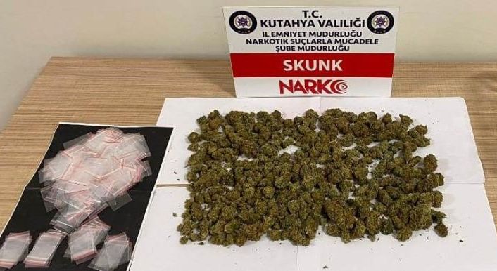 İl Emniyet Müdürlüğünden yapılan açıklamaya göre, Narkotik Suçlarla Mücadele Şube Müdürlüğü görevlilerince Kütahya-Eskişehir PTS noktasında durdurulan araç ve araç içerisinde bulunan S.A. isimli şüpheli şahıstan,137.52 gram skunk esrar maddesi ile uyuşturucu madde paketlemede kullanıldığı değerlendirilen 193 adet şeffaf kilitli poşet ele geçirildi.