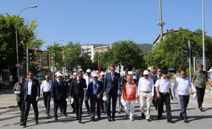 Vali Ali Çelik, Belediye Başkanı Prof. Dr. Alim Işık, protokol üyeleri, gençler ve çocuklar, Valilik önünden Belediyeye yürüdü. Yürüyüşe katılan çevreci çocuklar çevre temizliğine dikkat çeken pankartlar taşıyarak temiz çevre sloganları attılar.