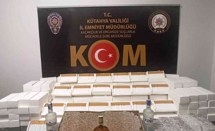 Kütahya’da polisin bir işyerine düzenlediği operasyonda, 66 bin 800 adet bandrolsüz boş makaron, 5 bin 180 adet içi kıyılmış tütün ile doldurulmuş bandrolsüz makaron ve 3 adet gümrük kaçağı yabancı bandrollü içki ele geçirildi.