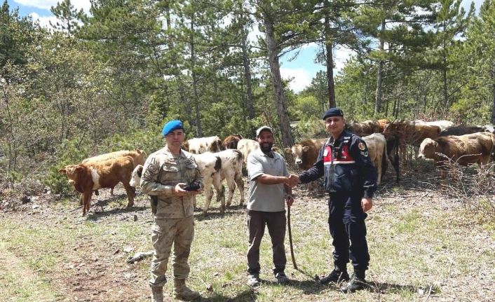 Kütahya’nın Soğukçeşme köyü ormanlık alanında 3 gün önce kaybolan 19 büyükbaş hayvan jandarma ekiplerince bölgeye yaklaşık 5 kilometre uzaklıkta dron ile bulunarak sahibine teslim edildi.