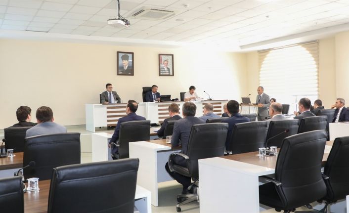 Toplantıda, İl Özel İdaresi Genel Sekreteri Murat Koyak, yol, içme suyu ve kanalizasyon çalışmaları hakkında bilgilendirmelerde bulundu.