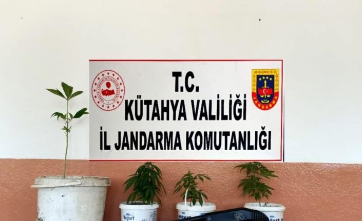 Kütahya’da köy evinde saksı içerisinde kenevir yetiştiren şahsı jandarma yakaladı.