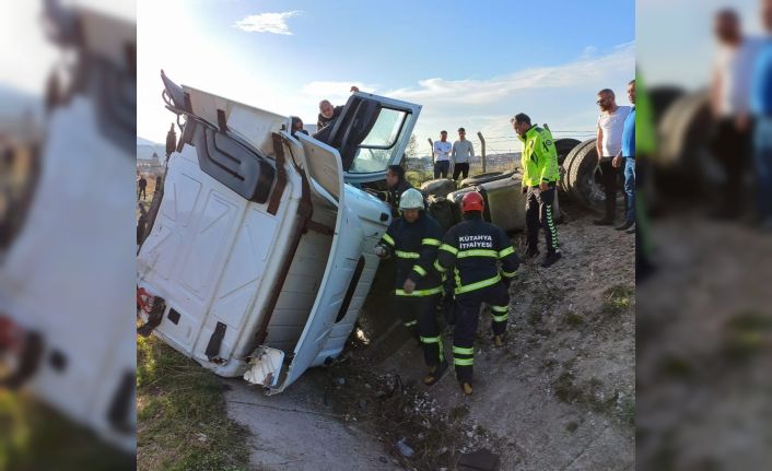Kütahya’da tırın şarampole devrilmesi sonucu meydana gelen trafik kazasında sürücü yaralandı.