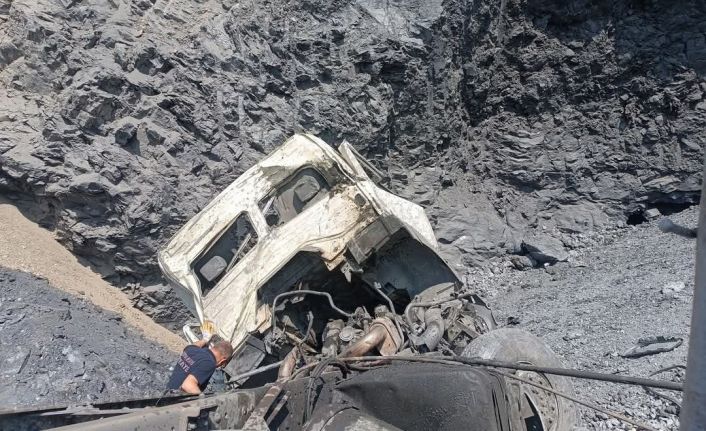 Kütahya’nın Altıntaş ilçesinde bir maden ocağında döküm yaptığı esnada uçuruma yuvarlanan hafriyat kamyonunun sürücüsü hayatını kaybetti.
