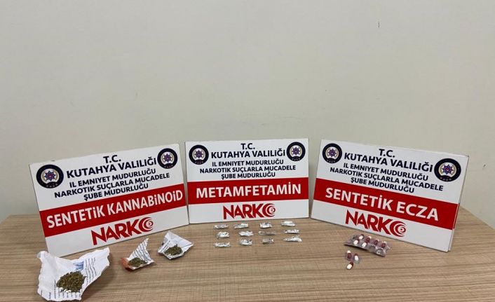 Kütahya İl Emniyet Müdürlüğü Asayiş Şube Müdürlüğü ekiplerince Saray Mahallesi üzerinde durdurulan O. V. isimli şahsın üzerinden, tek parça halinde, 0,23 gram metamfetamin, iki parça halinde, toplam 1,20 gram bonzai ve iki parça halinde, toplam 0,51 gr esrar maddesi ele geçirildi.