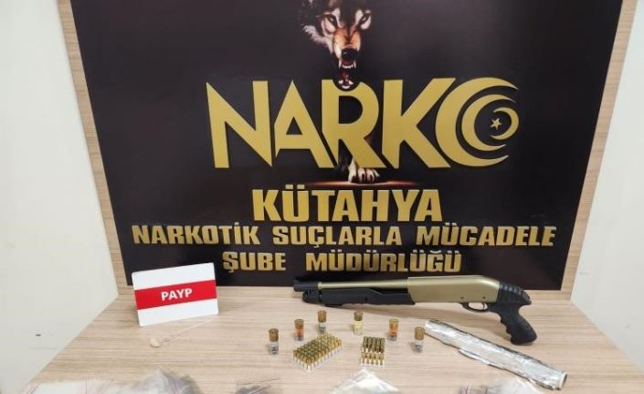 Kütahya İl Emniyet Müdürlüğü İstihbarat ve Narkotik Suçlarla Mücadele Şube Müdürlüğünce yapılan çalışmalar çerçevesinde hakkında uyuşturucu madde ticareti yaptığına yönelik bilgiler elde edilen M.O. isimli şahsa yönelik başlatılan projeli çalışma sonucu şahsın 3 ayrı kişiye uyuşturucu sattığı tespit edildi. Polis, şüphelinin evine operasyon düzenledi. Yapılan aramada, 1 adet uyuşturucu kullanımında kullanılan payp, alüminyum folyo, 900 adet şeffaf kilitli poşet,1 adet av tüfeği ve 73 adet tabanca fişeği ele geçirildi.