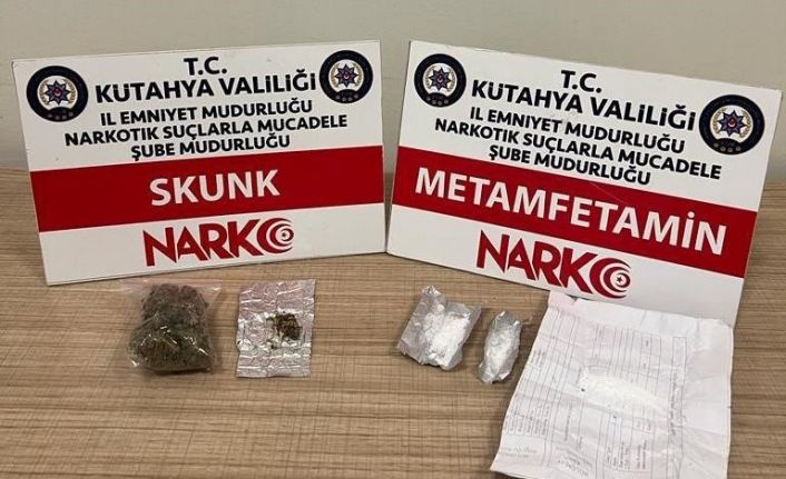 Kütahya’da polis ekipleri tarafından yakalanan şahsın üzerinde yapılan kontrollerde, 20,58 gram skunk ve 9,84 gram metamfetamin ele geçirildi.