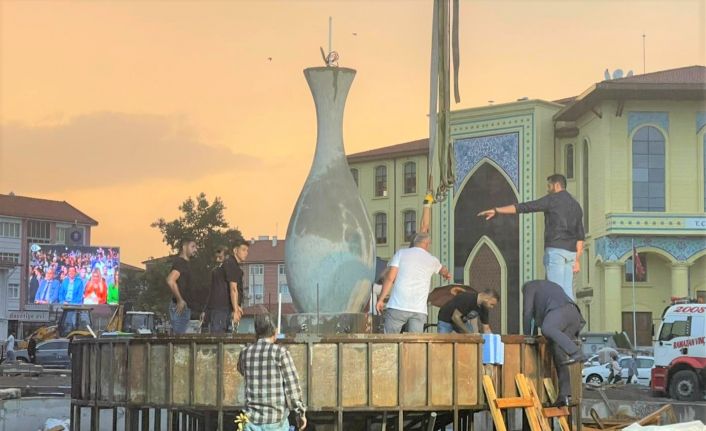 Zafer Meydanı projesi çerçevesinde restorasyon çalışması için yerinden sökülen Kütahya’nın simgesi vazo, restorasyon işlemlerinin ardından yeniden yerine monte edildi. Belediye Başkanı Prof. Dr. Alim Işık, emeği geçenlere teşekkür ederek, orijinal boyuttaki vazonun şehre hayırlı olmasını temenni etti.