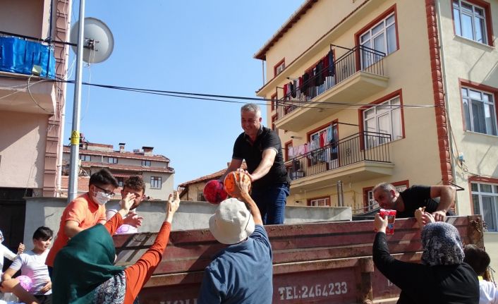 Mahalle Muhtarı çocuklara bayramlık top ve dondurma dağıttı