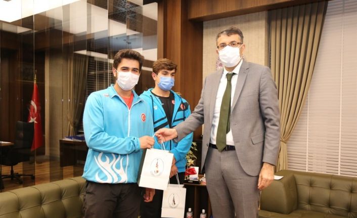 Türkiye Atletizm Federasyonu tarafından Mersin’de düzenlenen Seyfi Alanya Atmalar Şampiyonası ve Spor Toto U18 Kulüplerarası Atmalar Ligi 1. Kademe Yarışmalarında cirit branşında 67,76 metre atışla Türkiye şampiyonu olan Burak Demirkesen ile gülle atma branşında 18,31 metre atışıyla Türkiye üçüncüsü olan Melih Gökalp Vali Ali Çelik’i makamında ziyaret etti.