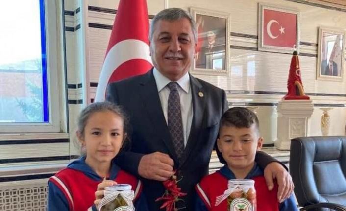 Kütahya’nın Altıntaş ilçesi Zafer İlkokulu öğrencileri “Yerli Tohum Tarım Atölyesi” projesi çerçevesinde kendi yetiştirdikleri ürünlerden yaptıkları turşuları Belediye Başkanı Arif Teke’ye hediye ettiler.
