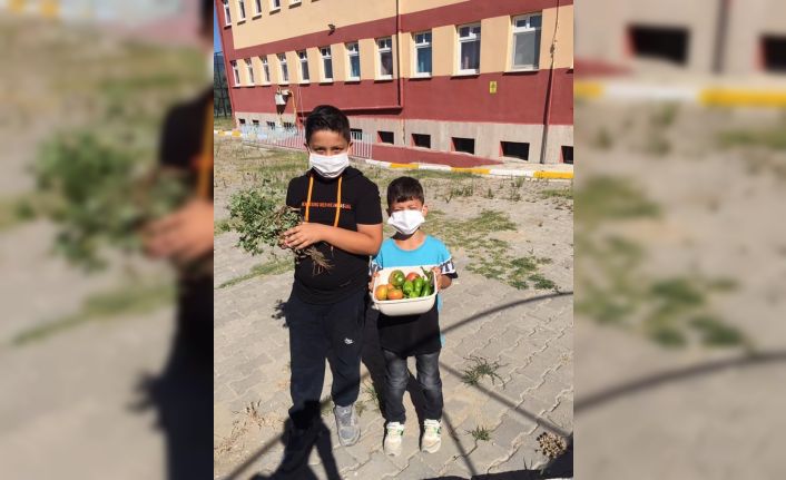 Kütahya’nın Emet ilçesi Gazi Emet İlkokulu bahçesinde oluşturulan ’’Tabiat atölyesi’’ bölümünde öğrencilerin yetiştirdiği sebzelerin hasat edilmeye başlandığı bildirildi.